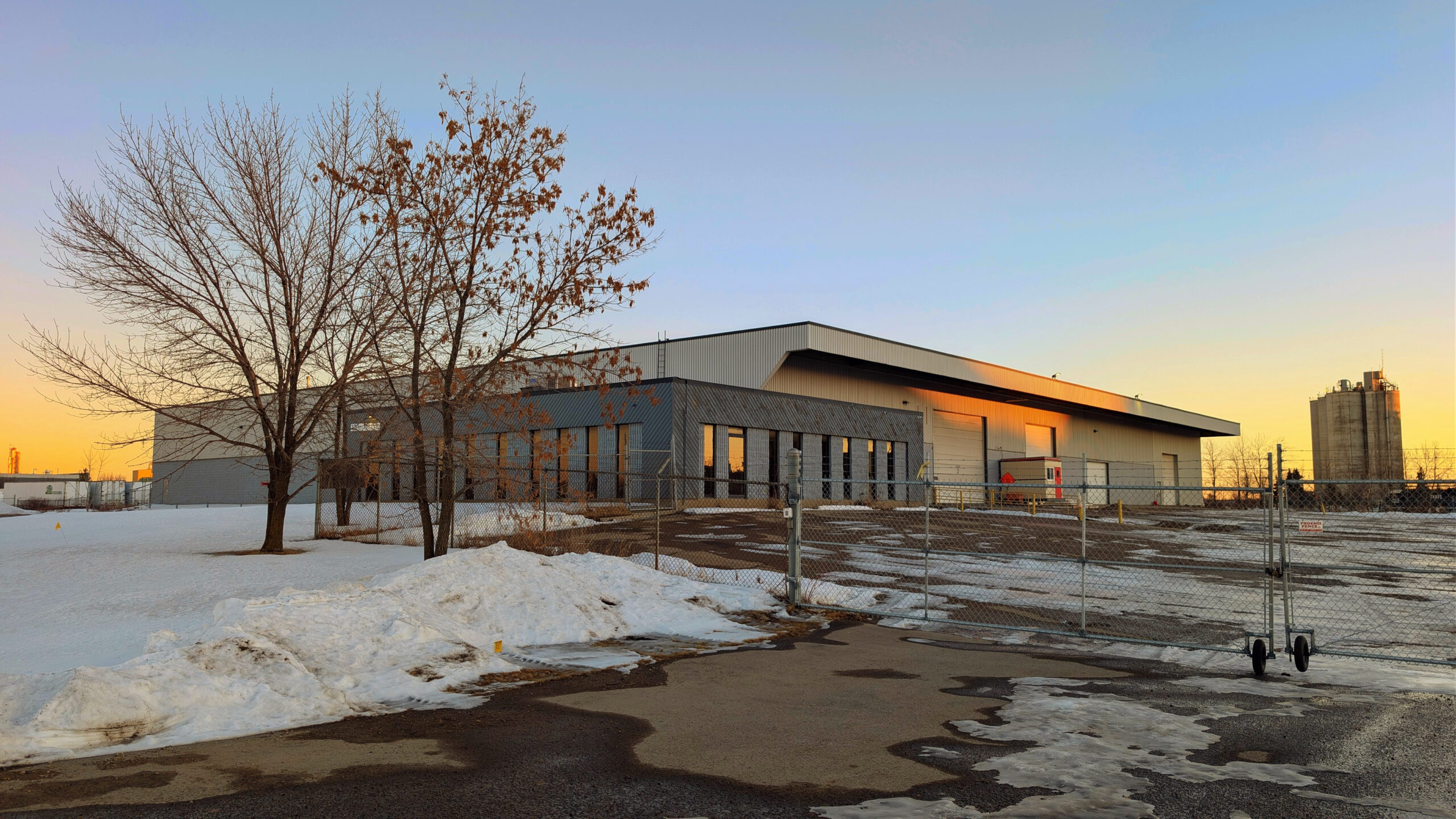 Industrial warehouse for lease at 16011 128 Avenue NW in Edmonton’s Mistatim industrial area. The property offers 46,010 SF including 42,908 SF of warehouse and 3,102 SF of office space, plus a 4,372 SF mezzanine not included in the GLA. The site includes approximately ±2.50 acres of fenced and lit asphalt yard with dock and grade loading. Lease rate is $10.50/SF with additional rent of $5.82/SF (2026).